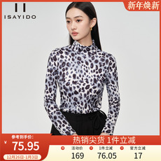 正肩打底t恤新款女半高领豹纹内搭上衣小个子休闲小衫