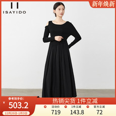 轻熟简约风黑色针织连衣裙女露肩收腰长裙气质优雅内搭裙子