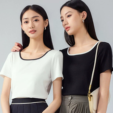 夏季方领正肩T恤女简约百搭打底小衫小个子短袖内搭上衣